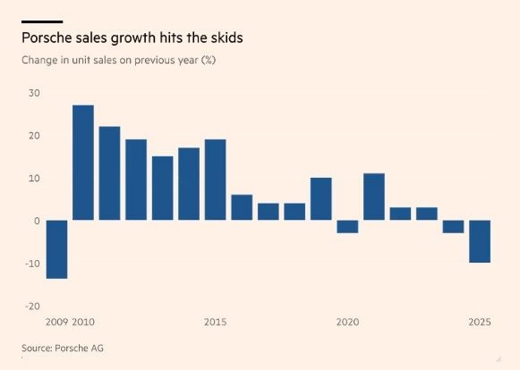 Theo tờ Financial Times (FT), số liệu cụ thể cho thấy Porsche chỉ xuất xưởng được 279.449 xe trong năm 2025, giảm đáng kể so với con số 310.718 xe của năm 2024. Với mức giảm 10%, đây là lần đầu tiên sau 15 năm Porsche phải đối mặt với một thực tế phũ phàng đến vậy.