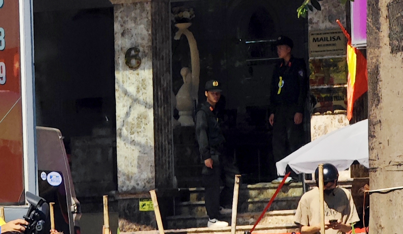 Lực lượng chức năng vẫn đang túc trực phía trước toà nhà
