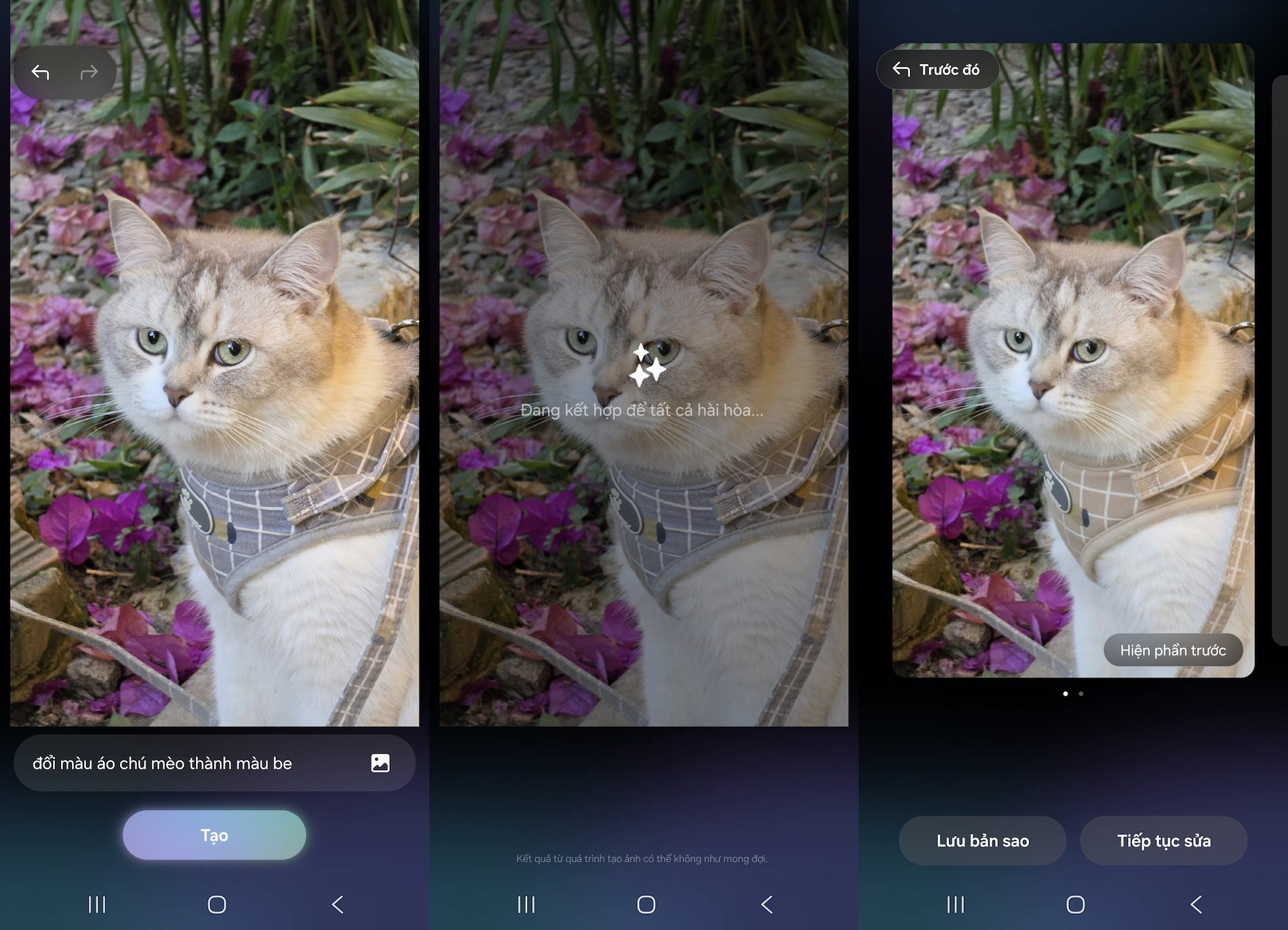 Chỉnh sửa màu áo chú mèo chỉ bằng một câu lệnh trong Photo Assist.