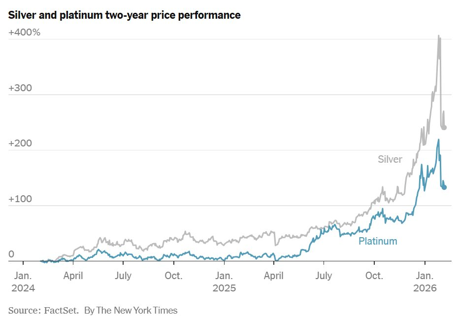 Mức tăng trưởng của bạc và bạch kim từ tháng 1/2024 đến nay.