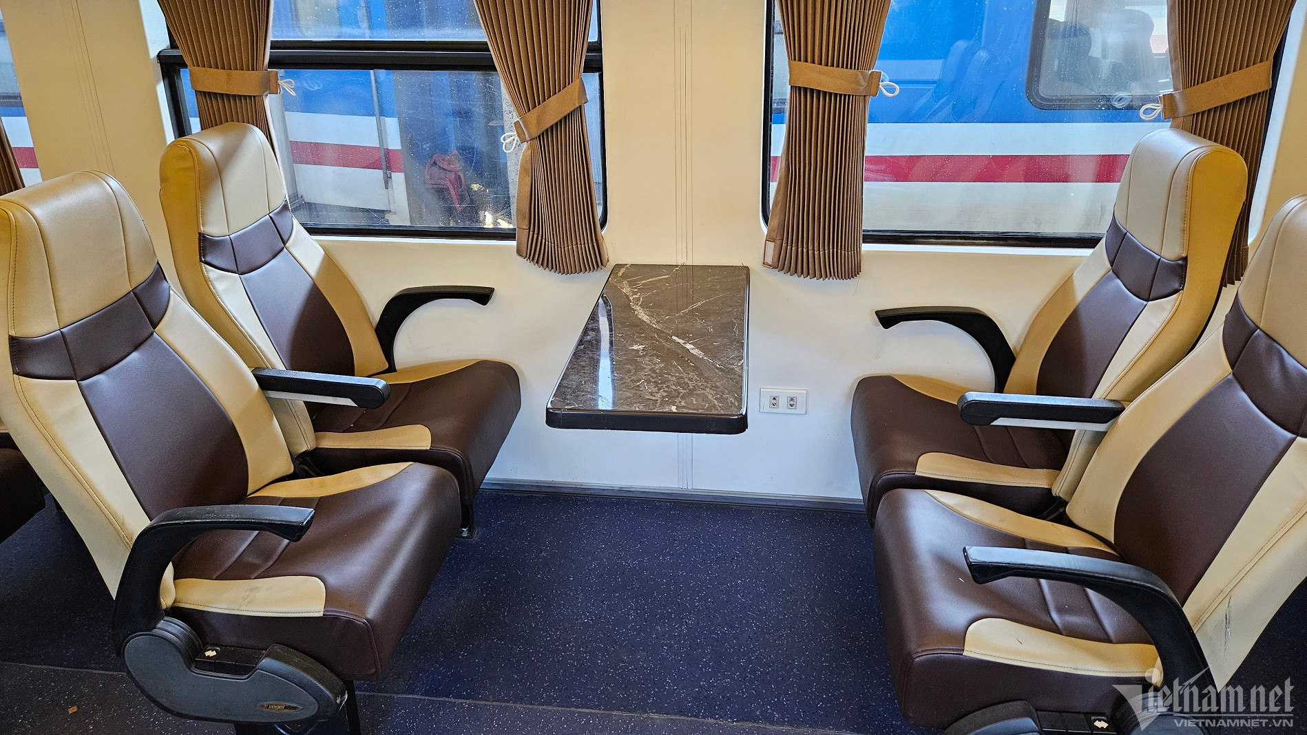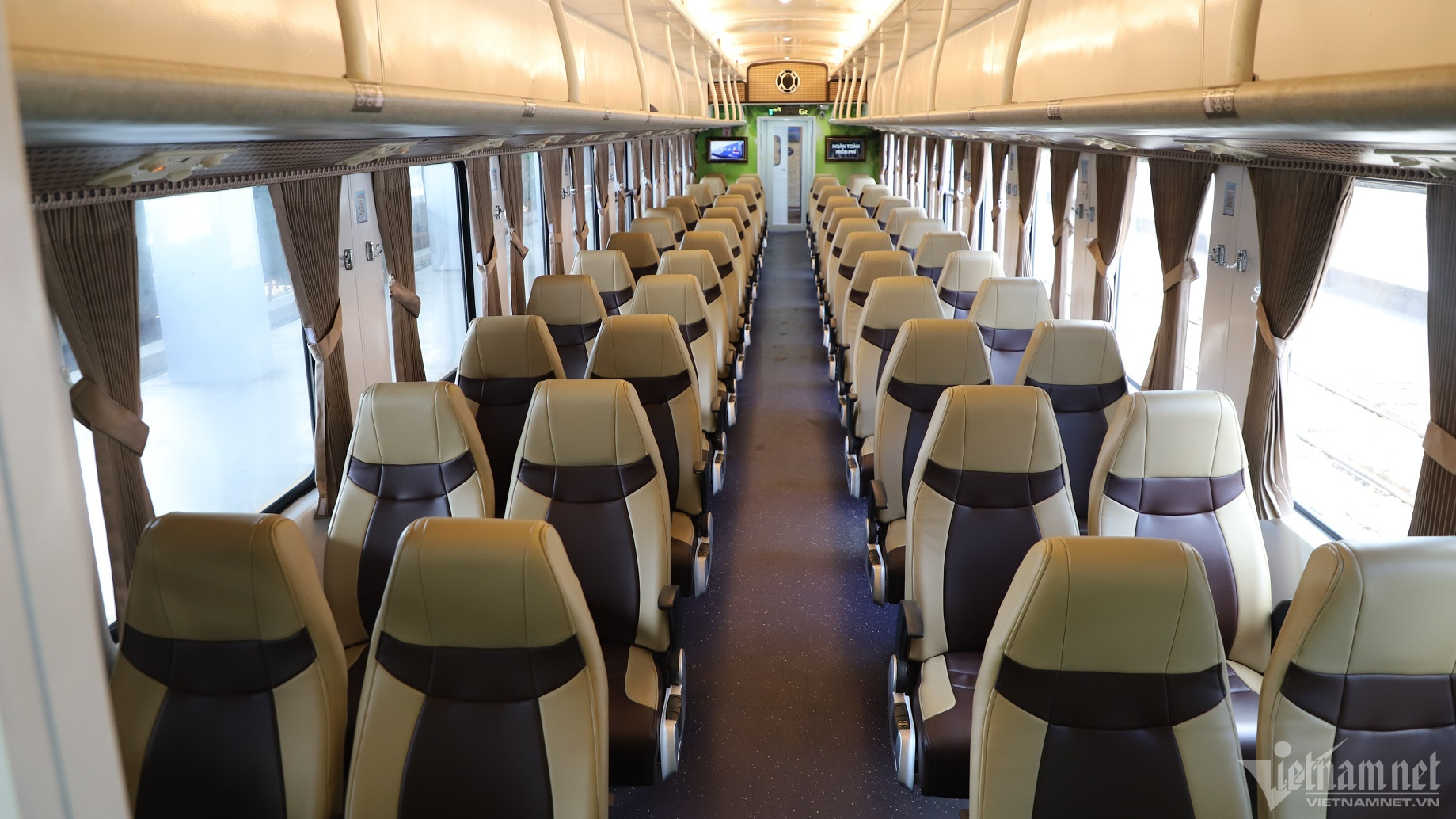 Nội thất toa xe được thay mới hoàn toàn. Ngoài các toa xe 4 giường, trên tàu còn bố trí 1 toa xe có 3 khoang VIP với 2 chỗ kiểu ghế sofa phù hợp với hành khách muốn có không gian riêng tư.