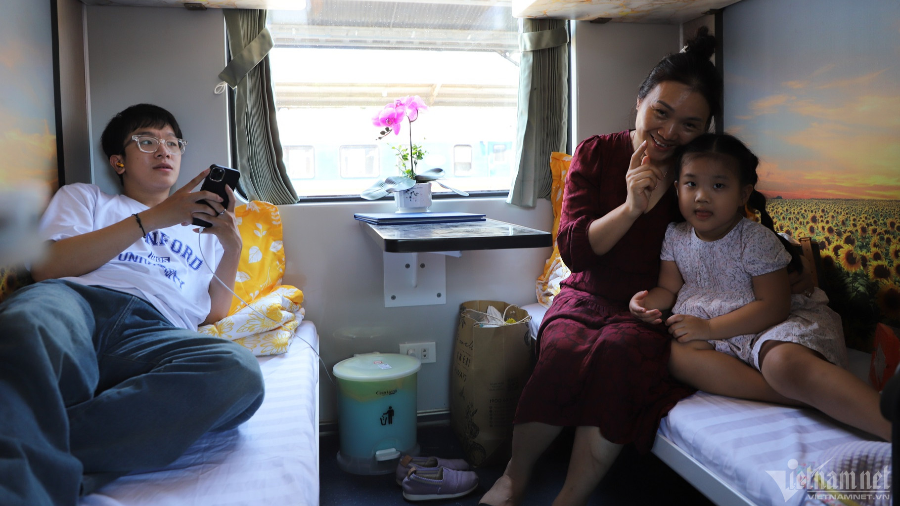 "Rất bất ngờ và may mắn trong chuyến du lịch này gia đình tôi được đi trên đoàn tàu mới, hiện đại như vậy. Bên trong nội thất sạch sẽ, trang trí rất tinh tế, đẹp mắt”, nữ hành khách cho hay.