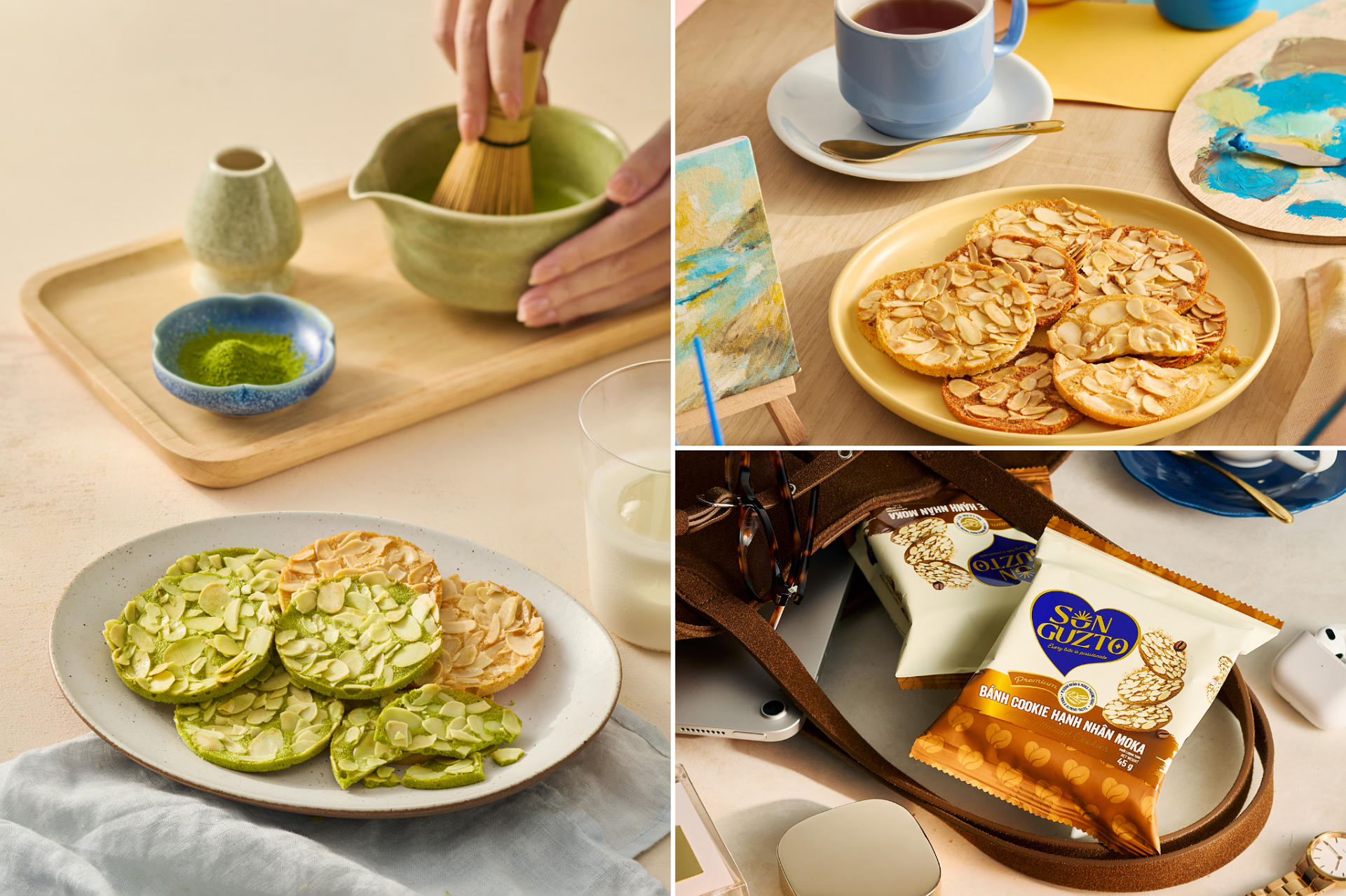 Không chỉ chinh phục bằng hương vị, Sun Guzto còn ghi điểm ở vẻ ngoài tinh tế và chất lượng chuẩn quốc tế. Bánh có lát hạnh nhân dày, vàng óng, độ bóng nhẹ của bơ, khi ăn giòn tan mà vẫn béo ngậy, tan trong miệng, vị ngọt được điều chỉnh vừa phải, thanh thoát và dễ chịu.