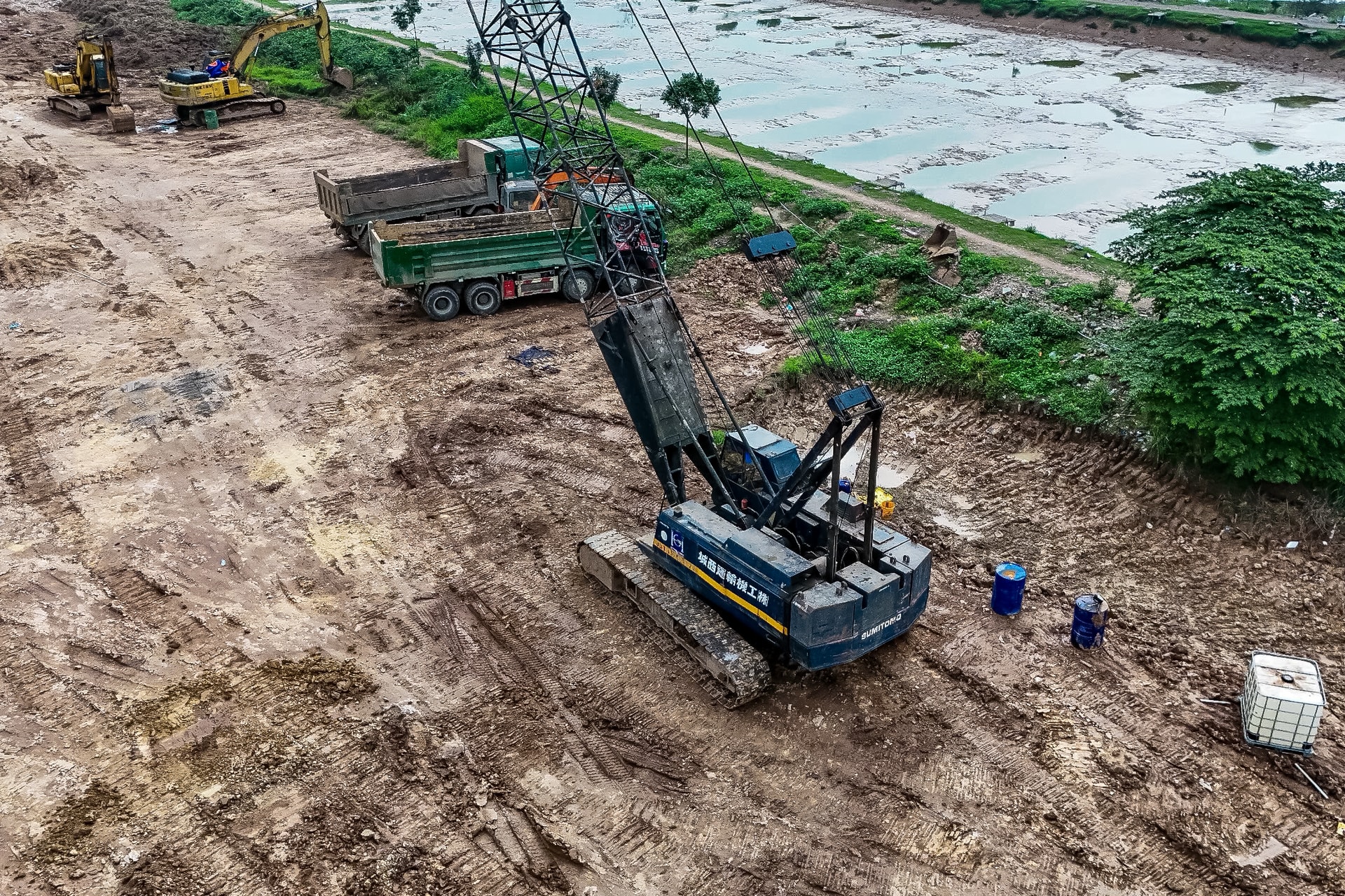Các mũi thi công được tổ chức khoa học, chia ca làm việc ngày đêm nhằm bảo đảm tiến độ đề ra. Nhà thầu đồng thời triển khai nhiều hạng mục song song như kè hồ, thi công hệ thống cống hộp và lắp đặt các hạng mục kỹ thuật.