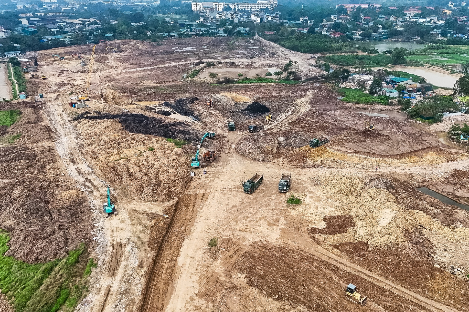 Những ngày này, tại phường Từ Liêm (thành phố Hà Nội), đại công trường thi công hồ điều hòa Phú Đô đang hoạt động sôi động với nhiều máy móc, phương tiện và công nhân làm việc liên tục.