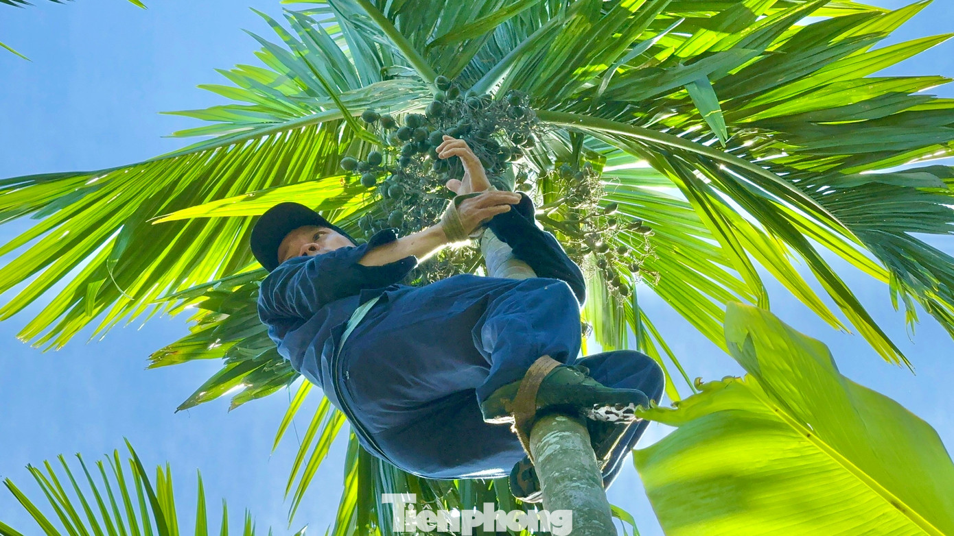 Theo ghi nhận của PV Tiền Phong, giá cau tươi tại Quảng Ngãi hiện chỉ còn 12.000 - 13.000 đồng/kg, trong khi cùng thời điểm năm ngoái lên tới 70.000 - 85.000 đồng/kg. Những vườn cau trĩu quả giờ chỉ còn lác đác vài người hái, chọn lựa từng chùm cau “đúng chuẩn” để bán.