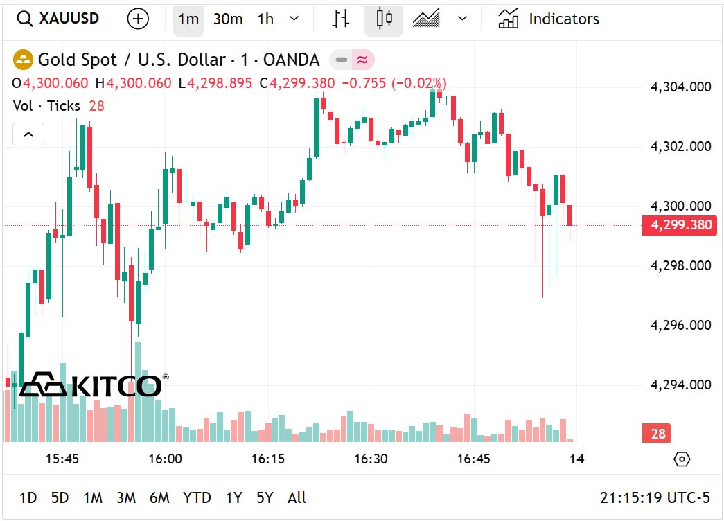 Theo Kitco News, đà tăng của vàng đạt mức cao nhất trong 7 tuần được thúc đẩy bởi lực mua kỹ thuật mạnh cùng bối cảnh Cục Dự trữ Liên bang Mỹ (Fed) bất ngờ phát tín hiệu nới lỏng chính sách tiền tệ, trong khi đồng USD tiếp tục suy yếu. Chỉ số USD Index đã rơi xuống mức thấp nhất 6 tuần, dao động quanh 98,44 điểm, giảm 1,1% trong tháng 12 và đang hướng tới tuần giảm thứ ba liên tiếp.