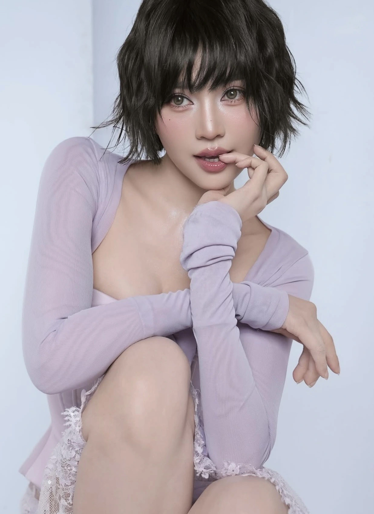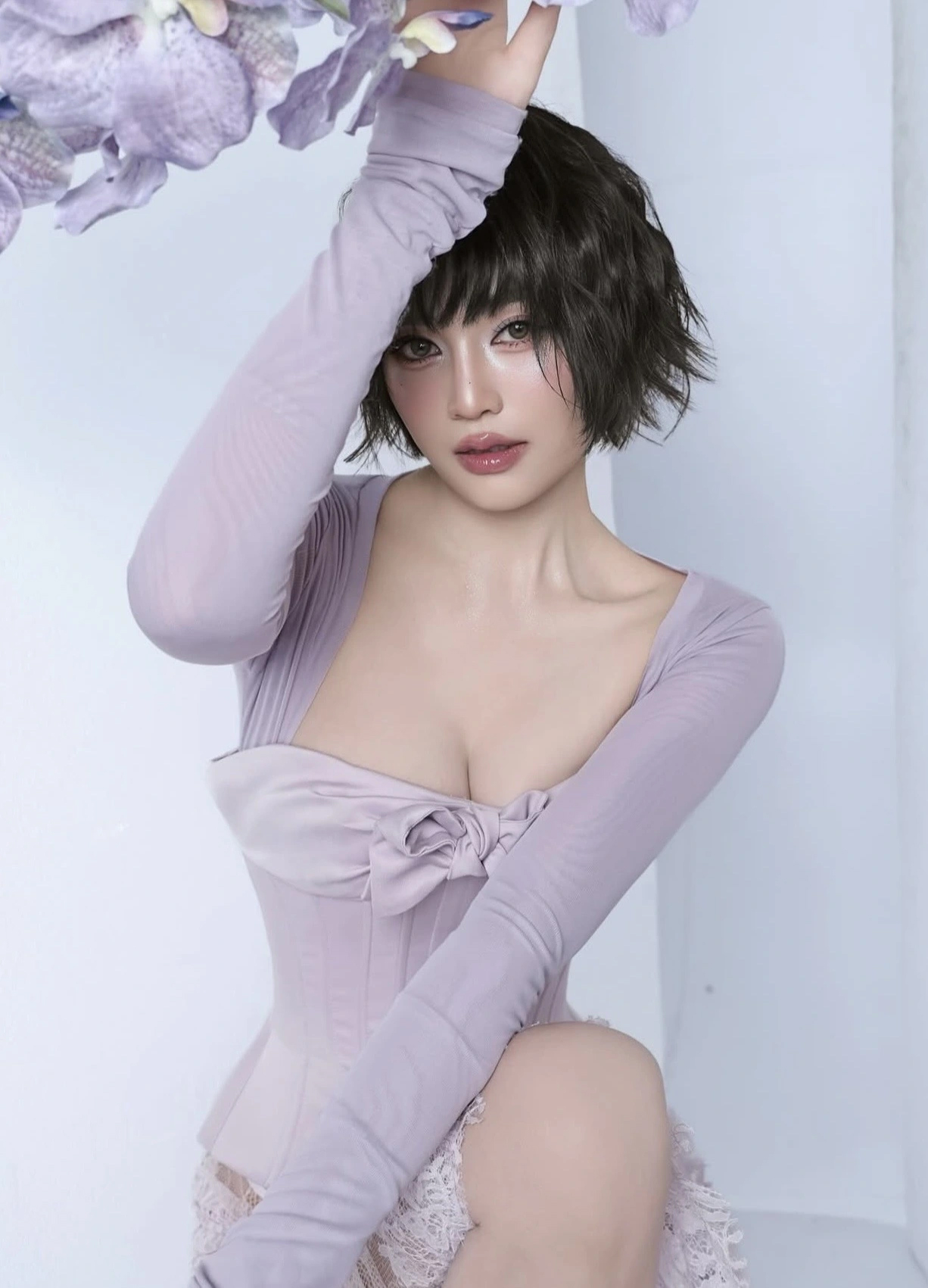 Trong loạt khoảnh khắc được chia sẻ, Ninh Dương Lan Ngọc lựa chọn thiết kế tông tím pastel ôm sát, tôn lên vóc dáng cân đối. Mái tóc ngắn cá tính kết hợp cùng lối trang điểm nhẹ nhàng giúp tổng thể trở nên hài hòa, vừa gợi cảm nhưng không mất đi nét thanh lịch.