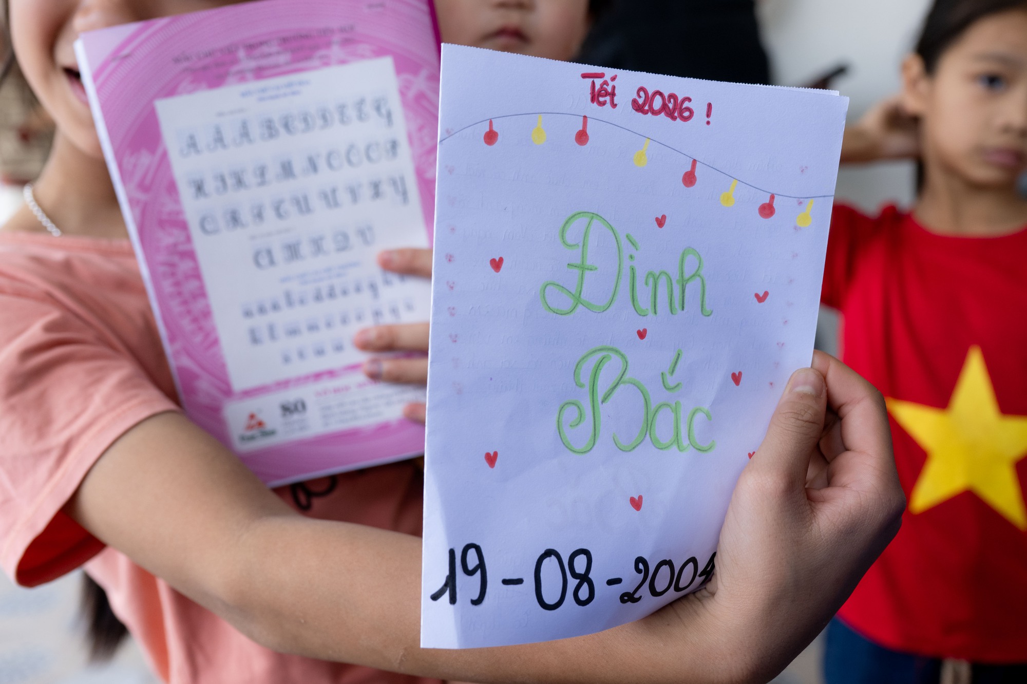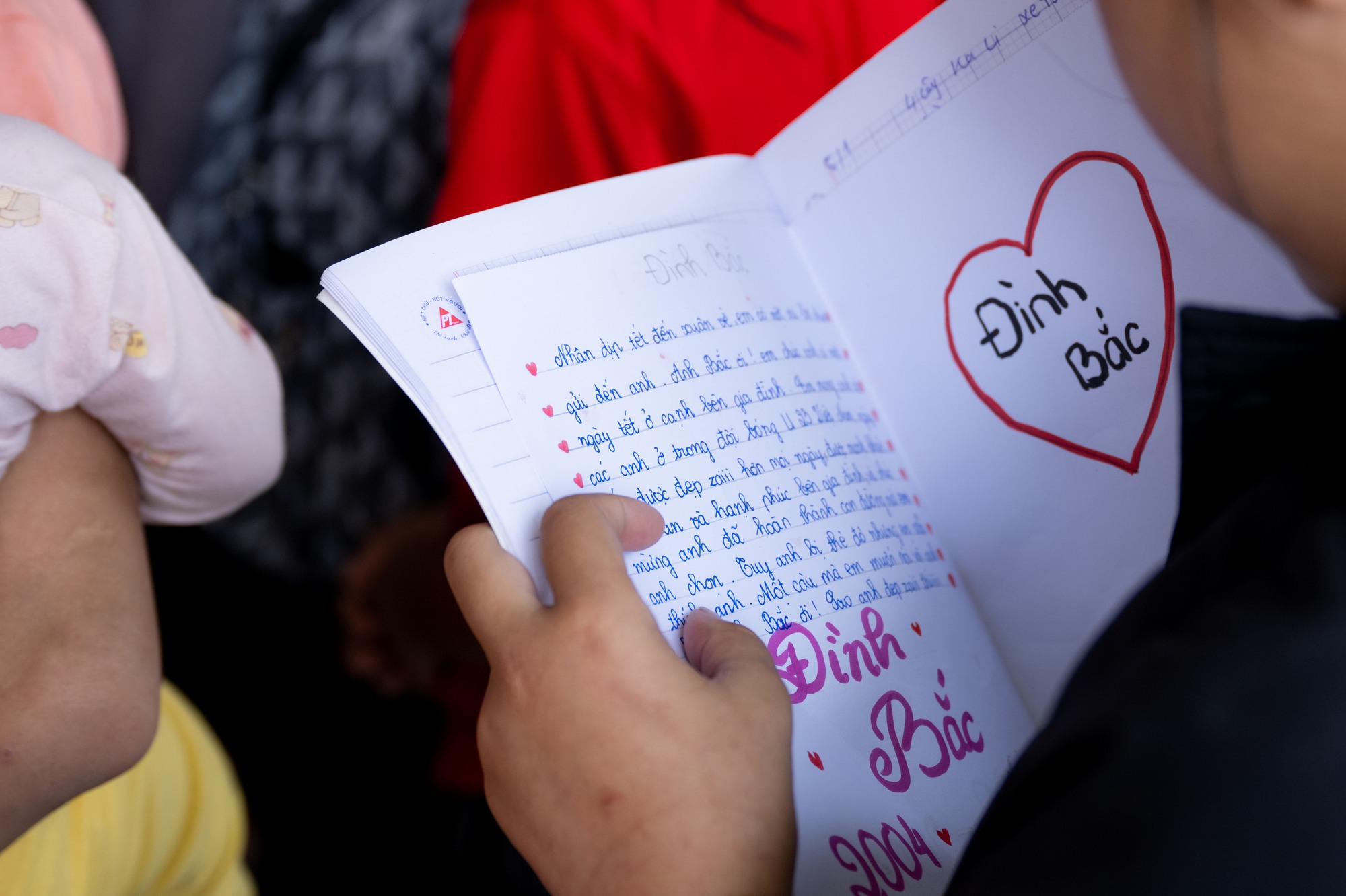 Trong số những người đến chúc mừng có không ít bạn trẻ còn mặc nguyên đồng phục học sinh, tay cầm gấu bông, ảnh lưu niệm, thậm chí chuẩn bị sẵn những bức thư viết tay gửi tặng thần tượng. Nhiều em chia sẻ chỉ mong được gặp Đình Bắc ngoài đời, xin chữ ký hoặc chụp chung một tấm ảnh kỷ niệm để làm động lực theo đuổi ước mơ bóng đá.