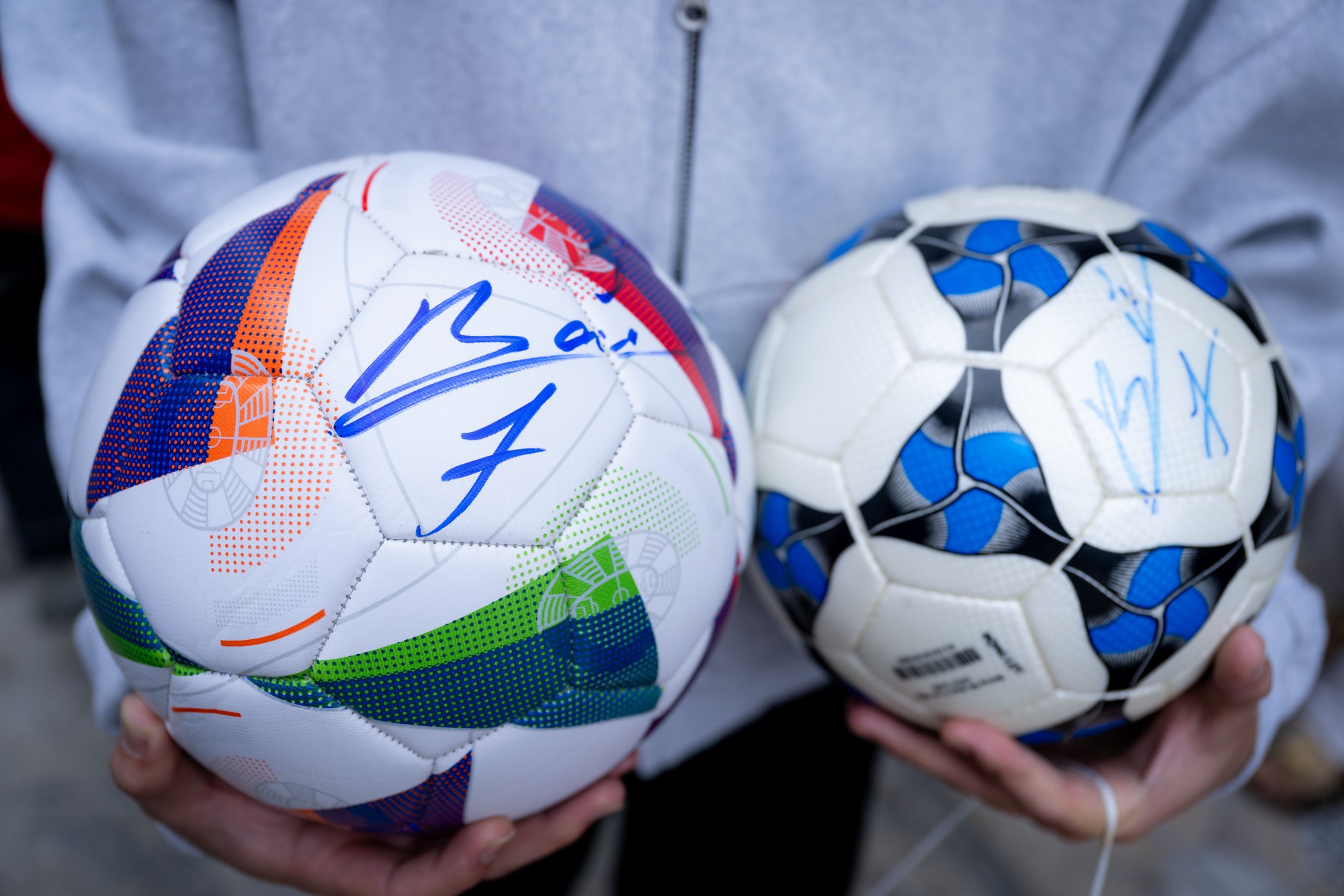 Trên tay là những trái bóng tròn, các bạn trẻ háo hức mong được Đình Bắc ký tặng làm kỷ niệm đáng nhớ.