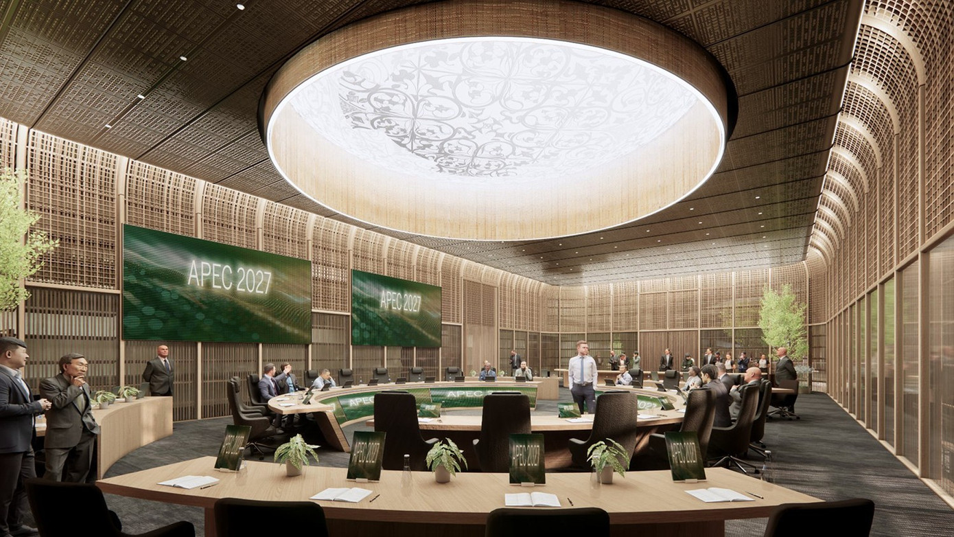Tổ hợp trị giá hơn 21.000 tỷ đồng này không chỉ là nơi tổ chức các cuộc họp quan trọng nhất của APEC 2027, mà còn mang trong mình những triết lý văn hóa - kiến trúc đậm bản sắc Việt. Nhà hát đa năng hình khối tròn tượng trưng cho Trời, Trung tâm Hội nghị hình vuông tượng trưng cho Đất, tạo nên tổng thể cân bằng mang tính biểu tượng. Những họa tiết vảy rồng, lũy tre hay đường nét sóng biển Phú Quốc được đưa vào thiết kế, giúp công trình trở thành “dấu ấn của thời đại” ngay khi vừa hình thành.