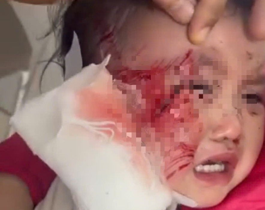 Cháu V. bị thương nặng ở vùng mặt.