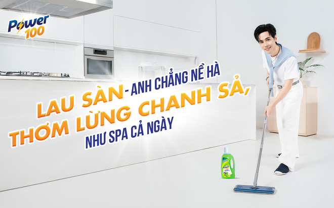 Theo đó, "trợ thủ" mà nam ca sĩ tin tưởng bật mí cho các chàng trai ở bước cuối cùng này là nước lau sàn Power100 tinh dầu chanh sả với công thức độc đáo giúp sàn nhà sạch khô sáng bóng nhanh chóng. Hương thơm mát lành từ tinh dầu chanh sả tự nhiên không chỉ xua đuổi côn trùng mà còn tạo cảm giác dễ chịu, như bước vào spa mini tại nhà. Sau khi bắt tay vào lau dọn, không gian nhanh chóng bừng sáng, chắc chắn khiến nàng rung rinh theo kiểu: "nhà sạch thì mát, trời có "nóng ác" thì crush cũng dễ tính như kem" mà "tổng tài" bày tỏ.